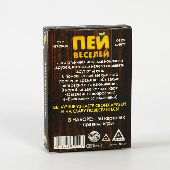 Купить игра для компании "пей веселей" 50 карт от 180 руб. с доставкой до пункта выдачи в Оби. Интернет магазин ДекаМаркет. Оплата при получении.