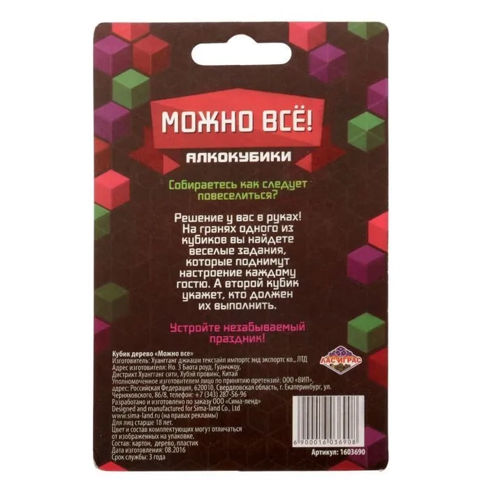 Купить кубик "можно все", алкокубики для принятия решений от 60 руб. с доставкой до пункта выдачи в Оби. Интернет магазин ДекаМаркет. Оплата при получении.